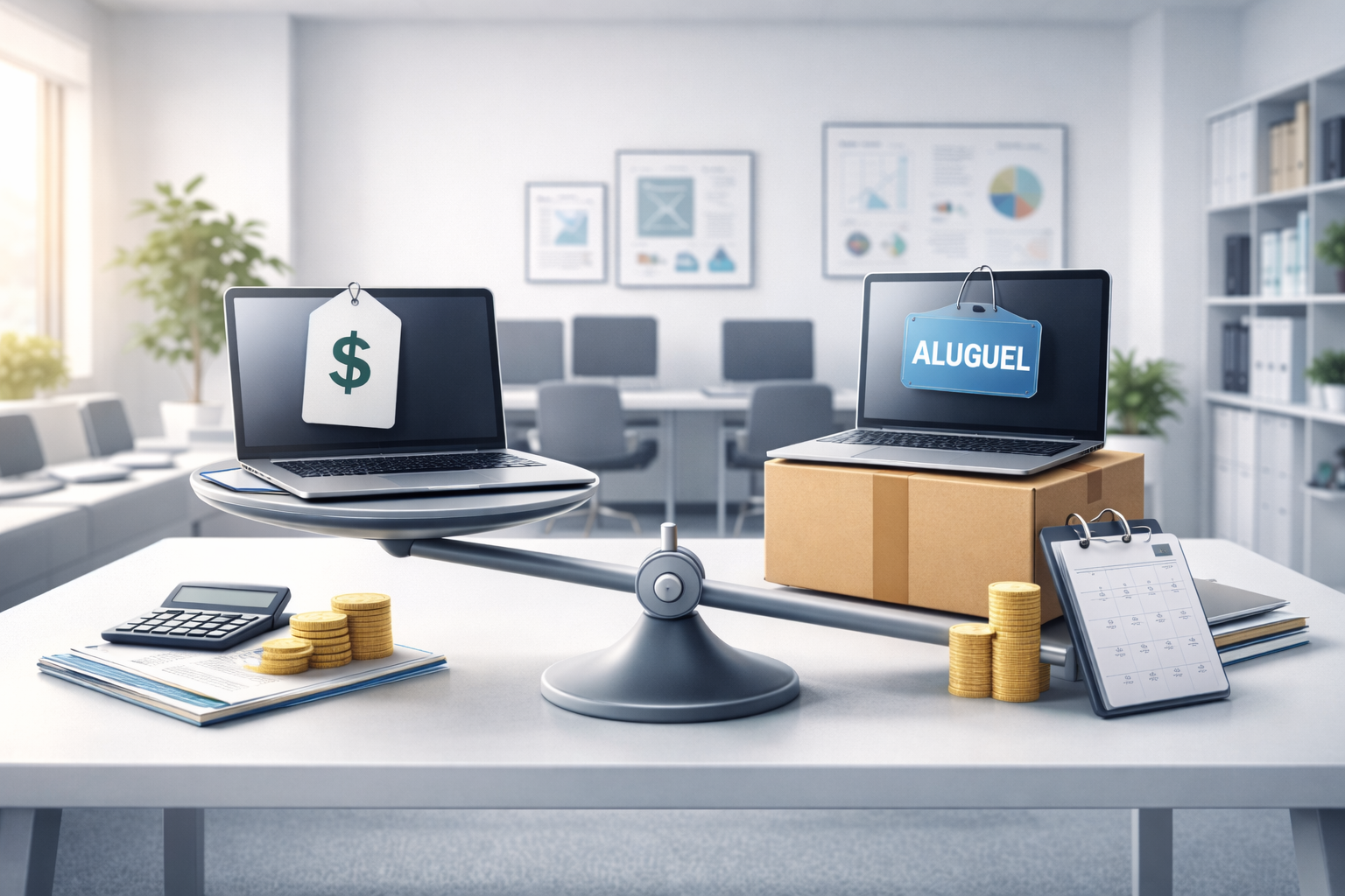 • Assistência técnica: Aluguel geralmente inclui suporte, ideal para empresas sem equipe de TI interna.
